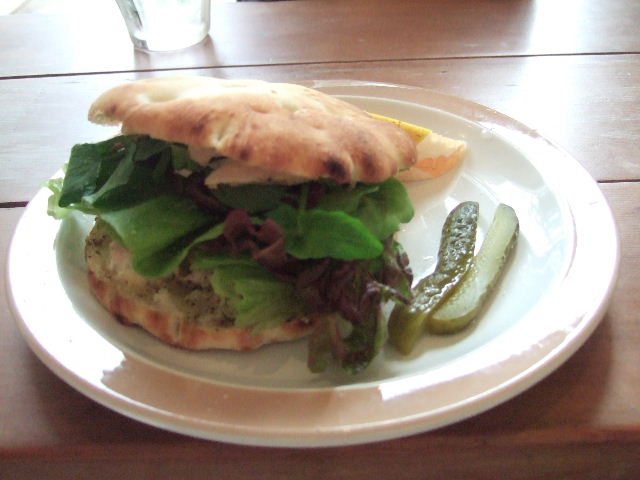 ランチタイムだったので、フォカッチャのチキンとクリームチーズのサンド。
