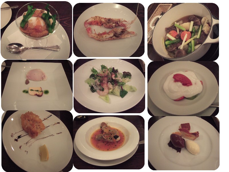 お料理もコースで4000円くらいで、ポトフを付けて♪ってお願いしていたんだけど!前菜から温泉たまごにうにのジュレ→自家製ハムとピクルス&海老のテリーヌ→白子のフライ→手長海老のガーリック焼き→サラダ→ブイヤベース→ポトフ→デザート♡